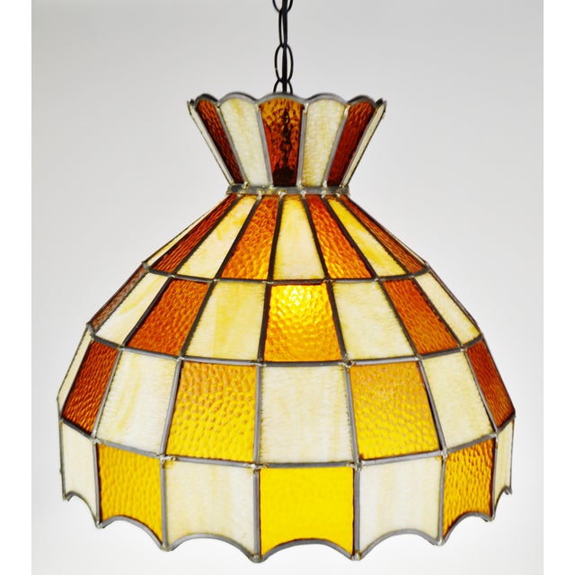 Details About Vintage Leaded Stained Glass Chandelier 1970 S Vgc