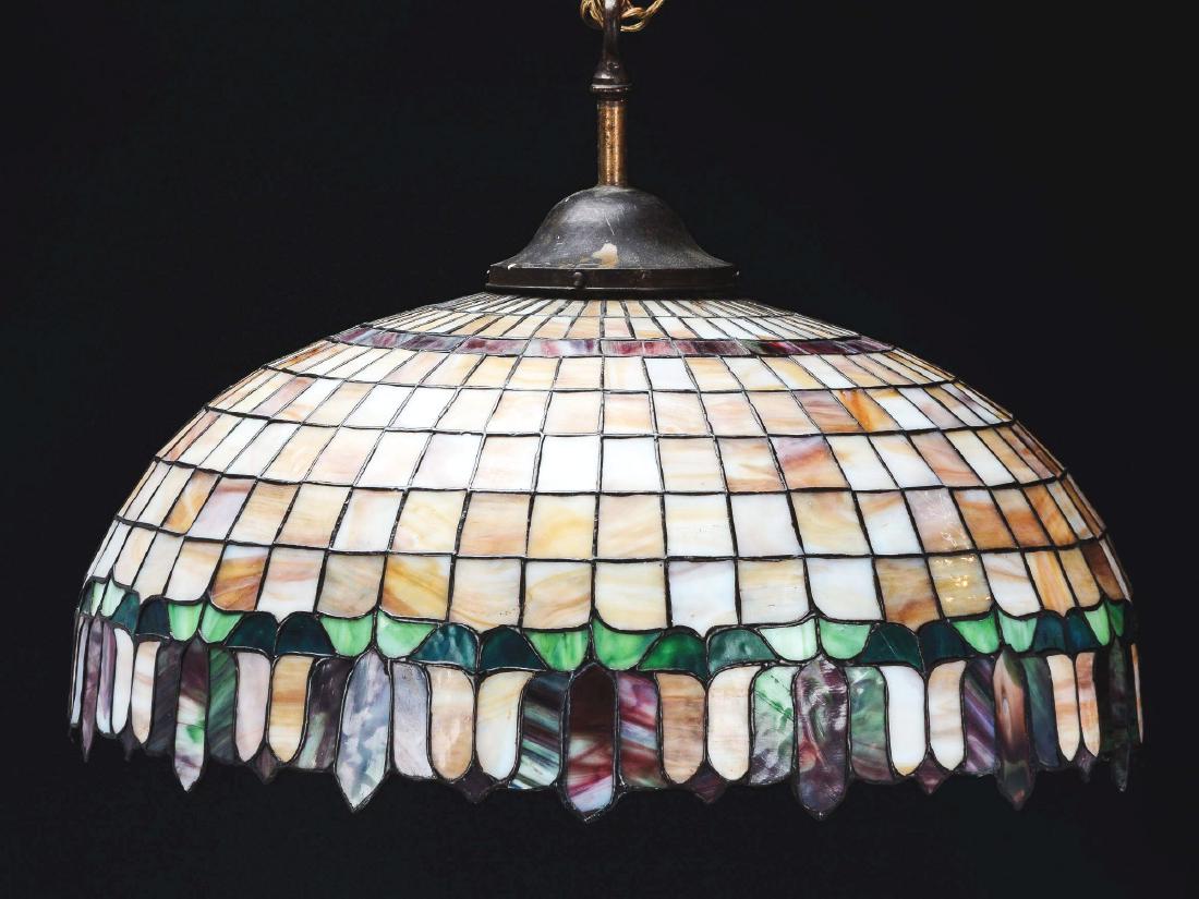 Leaded Glass Chandelier Has Large Dome Shade Featuring An