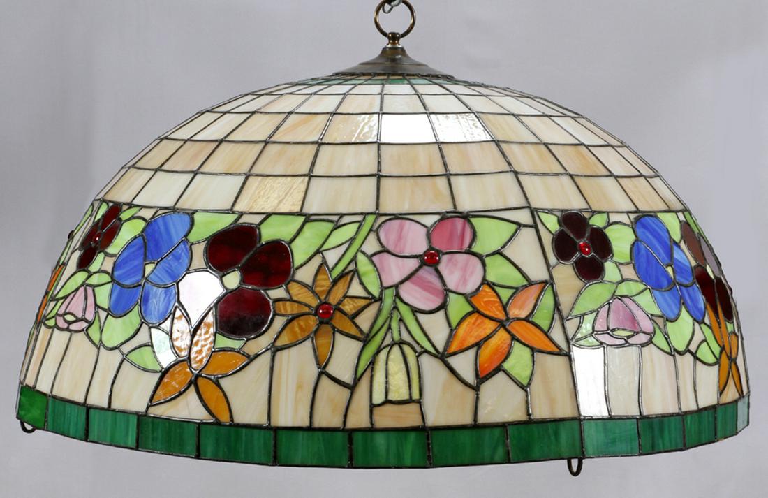 Arts And Crafts Leaded Glass Chandelier Jeweled Floral