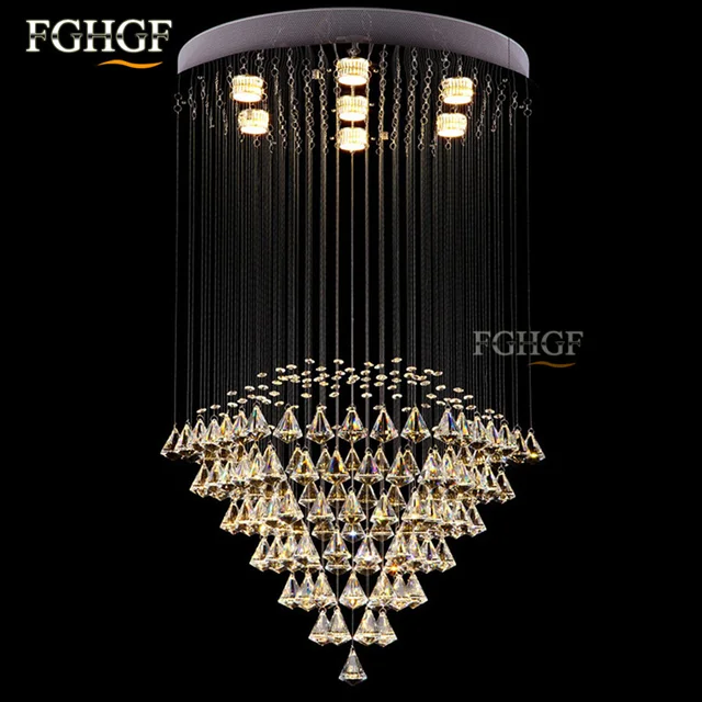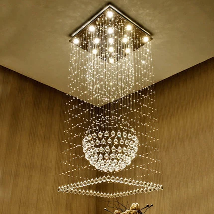 Stairwell Pendant Lights Modern Led Crystal Chandeliers