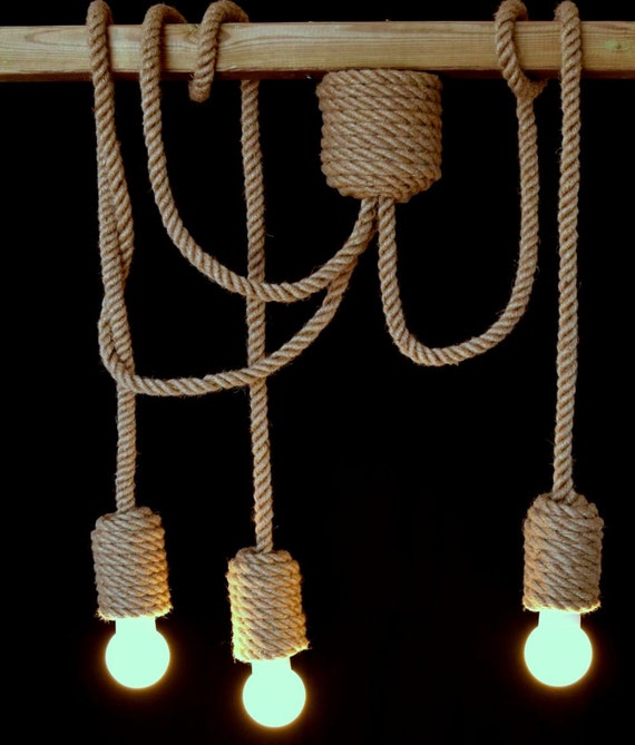 Jute Long Chandelier Lights Pendant Light Made Of Sailing Rope 200cm 80 With 3 Pendants Coastal Hanging Light Beach House