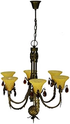 Amazing Antique Five Light Iron Brass Chandelier With