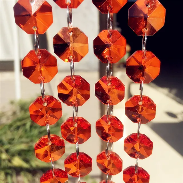 Us 87 12 12 Off Beautiful 30meters Orange Red 14mm Glass Beads Hanging Curtain Chains Crystal Chandelier Prism Hanging Chains Creative Home In Party