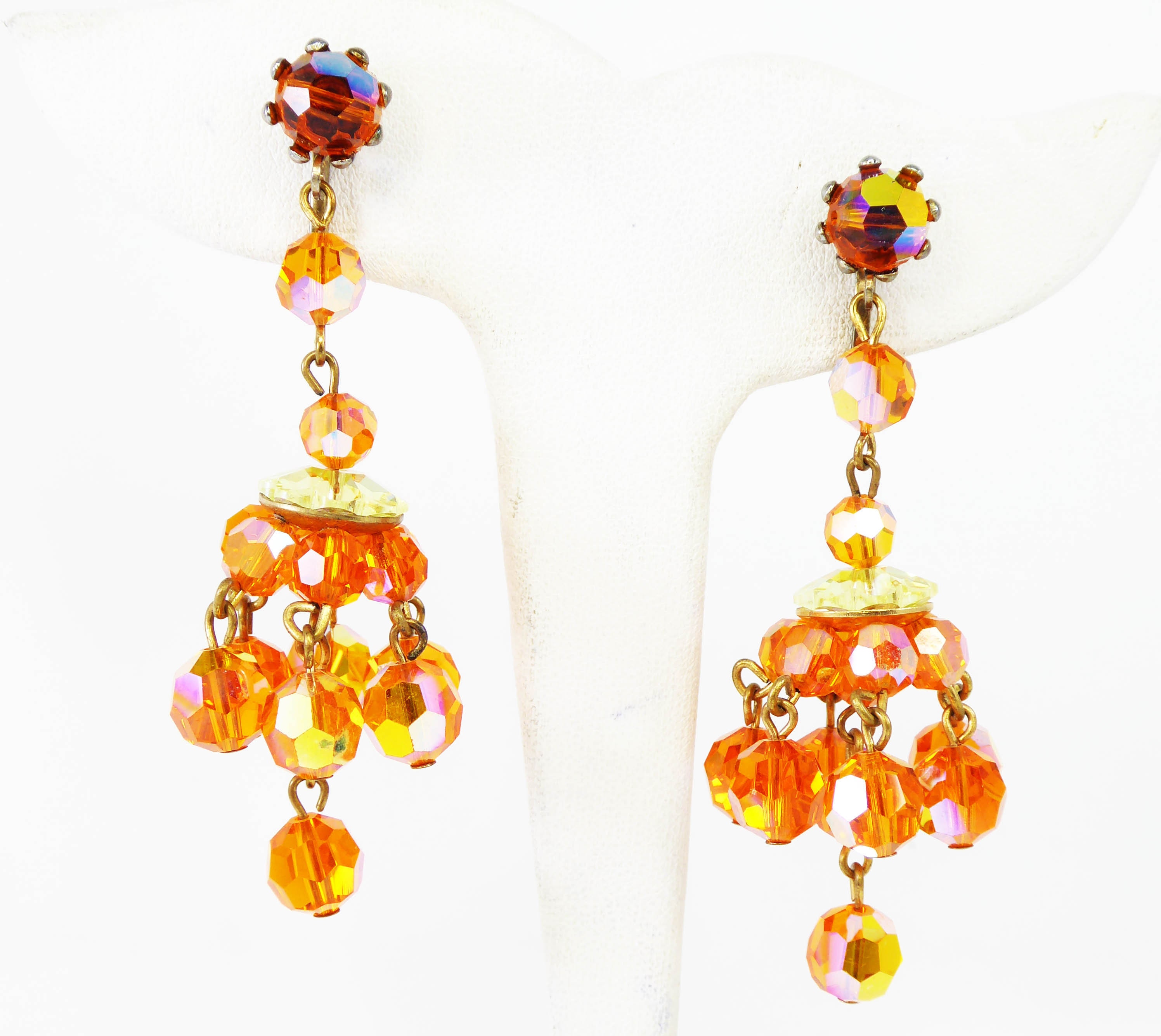 Details About Orange Crystal Chandelier Earrings Iridescent Rose Gold Wash Brass Findings