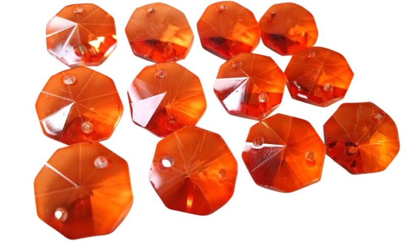 50 Orange 14mm Octagon Chandelier Crystal Beads 2 Holes