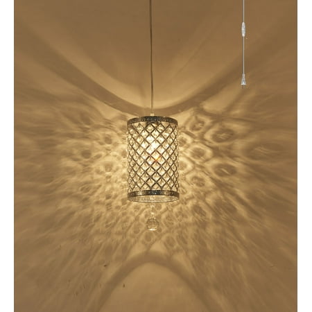 Surpars House Plug In Pendant Light Silver Crystal Chandelier With 17 Cord And On Off Switch In Line