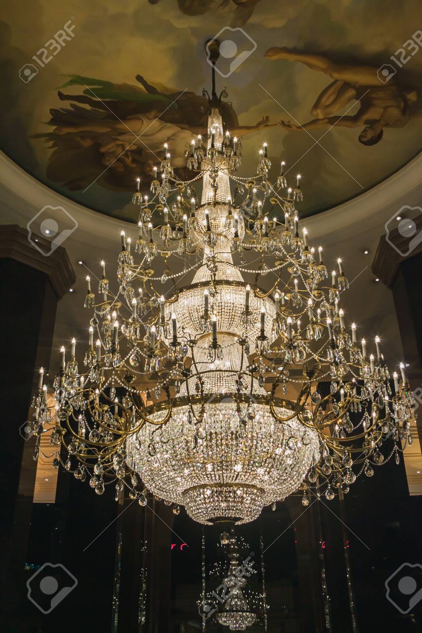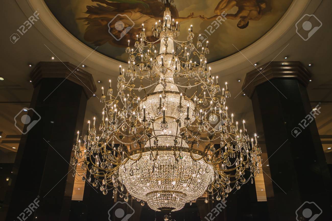 Crystal Chandelier Lit Orange Hue Dark Stock Photo Edit Now