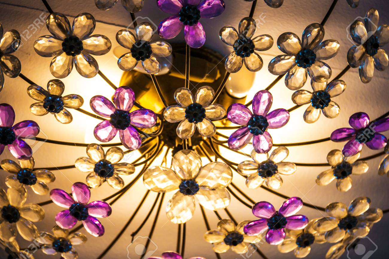 Abstract Flower Crystal Chandelier Purple And Orange Color