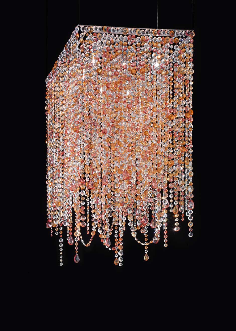 Square Chandelier In Curtain Of Pink And Orange Cut Crystal