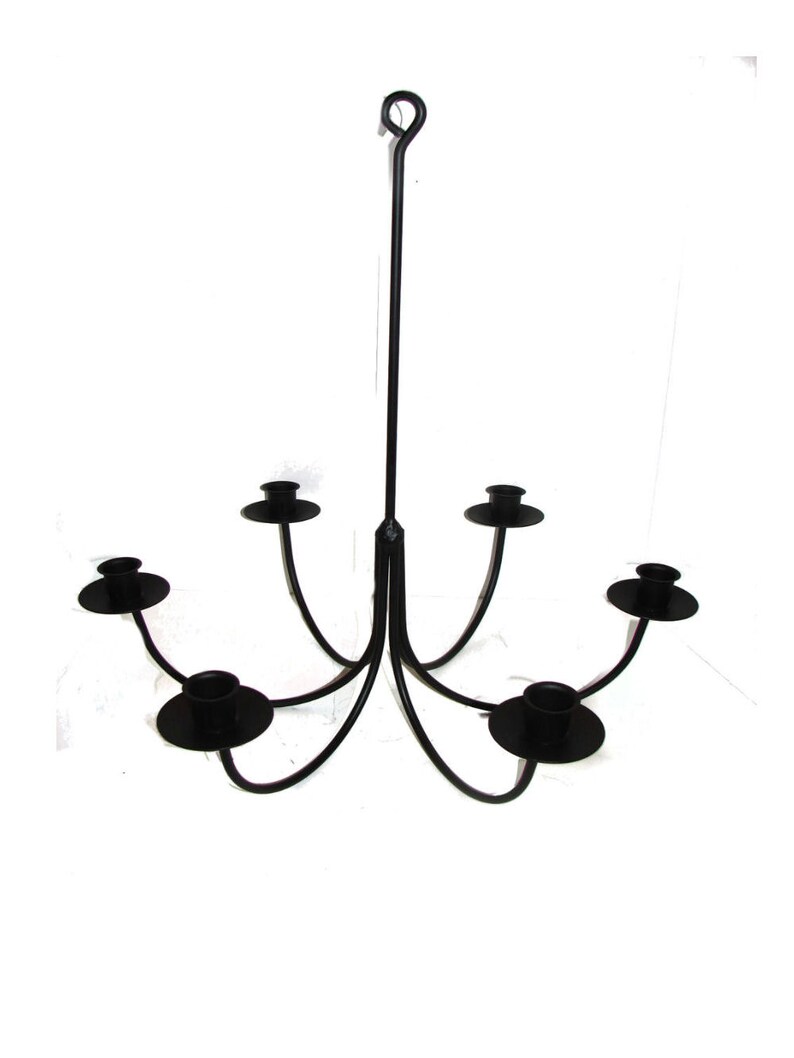 Wrought Iron 6 Arm Candle Chandelier Candolier Diy Wedding Hanging Light Fixture Indoor Outdoor Paintable Handmade In The Usa