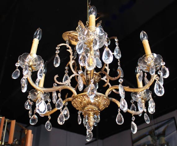 Baroque Rococo Bronze Crystal Chandelier Hanging Fixture Pendant Light Antique