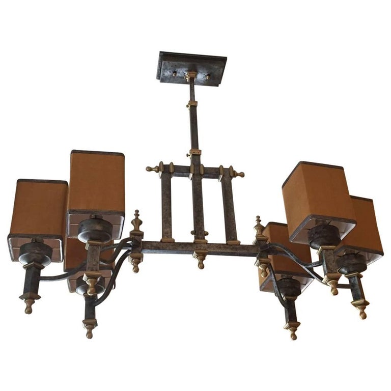 Italian Iron And Brass Chandelier From Early 20th Century With Lampshades