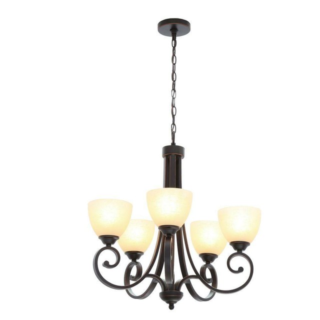 Hampton Bay 5 Light Oil Rubbed Bronze Chandelier With Frosted White Glass Shades