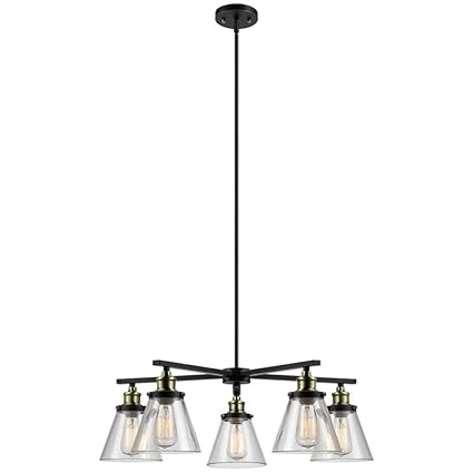Globe Electric 65617 Shae 5 Light Vintage Edison Chandelier Bronze Color Oil Rubbed Finish Antique Brass Decorative Sockets Clear Glass Shades