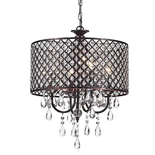 Edvivi Marya 4 Lights Oil Rubbed Bronze Round Crystal Chandelier Ceiling Fixture Beaded Drum Shade Glam Lighting