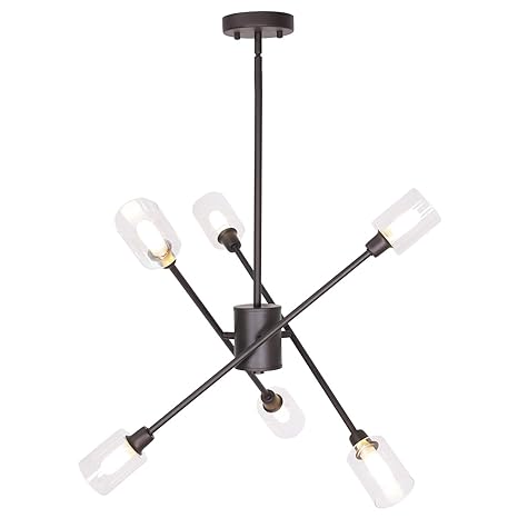 6 Lights Modern Sputnik Chandeliers With Clear Glass Shades Oil Rubbed Bronze Mid Century Pendant Light Dining Room Lighting Fixtures Hanging G9 Base