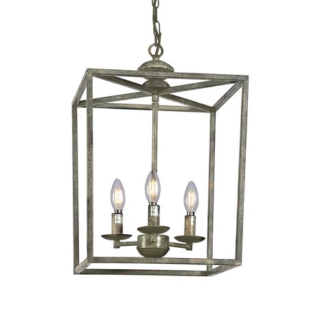 Wideskall 14 Industrial Oil Rubbed Bronze Finish Square Rectangle Metal Iron Cage Chain Hanging Chandelier Ceiling Light 3 Bulbs Lighting Fixture Ul
