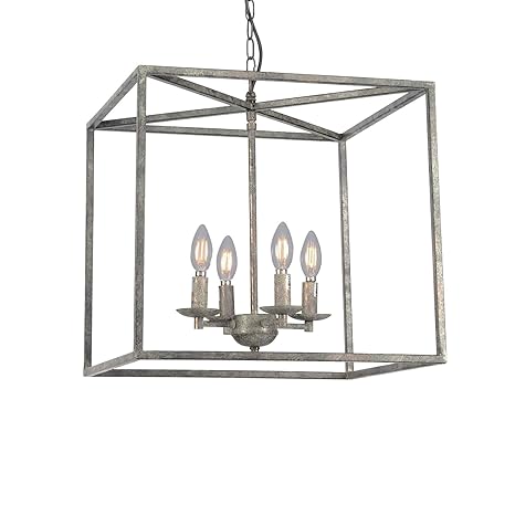 Wideskall 4 Bulbs Industrial Square Rectangle Chandelier Lighting Fixture 18 Inch Metal Cage Oil Rubbed Bronze Finish
