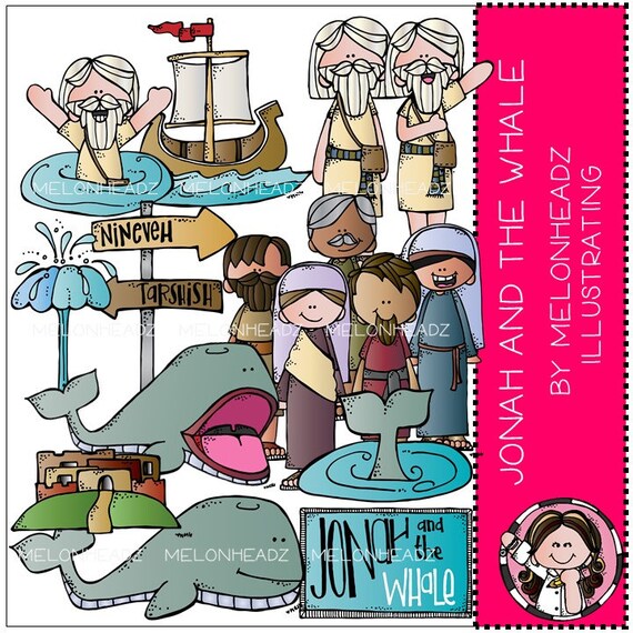 Jonah The Whale Clip Art Bundle Color And B W