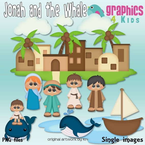 Jonah And The Whale Digital Clipart Clip Art For Scrapbooking Party Invitations Instant Download Clipart Commercial Use