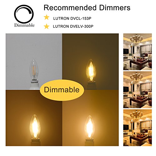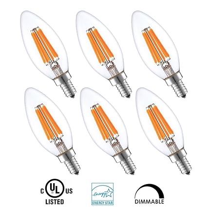 Hola led candelabra bulb 40w equivalent led chandelier bulb dimmable led lamp bulb e12 base warm white 2700k led filament bulb frosted glass 45w 300 lumens 360 beam angle ul listed 6 pack 38 out of 5 stars 57. Many of these led bulbs are dimmable with a compatible led dimmer. Dimmable e12 candelabra led bulbs 40w equivalent 2700k warm white 4w filament led chandelier light bulbs b11 vintage edison clear candle lamp with decorative candelabra base pack of 12 45 out of 5 stars 186 3299 32.