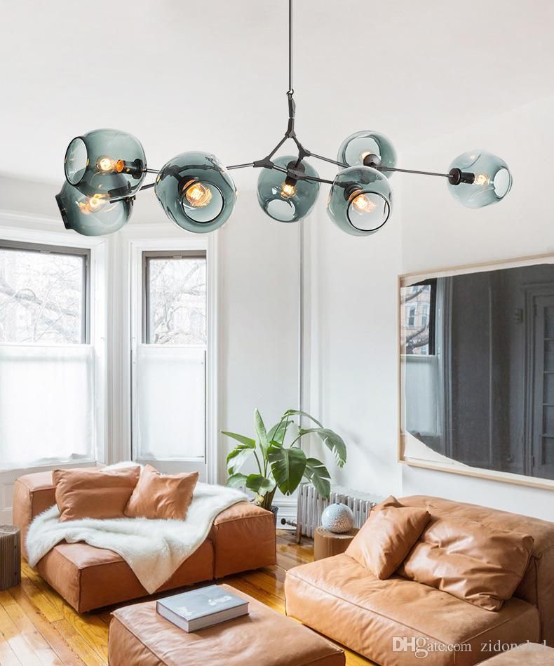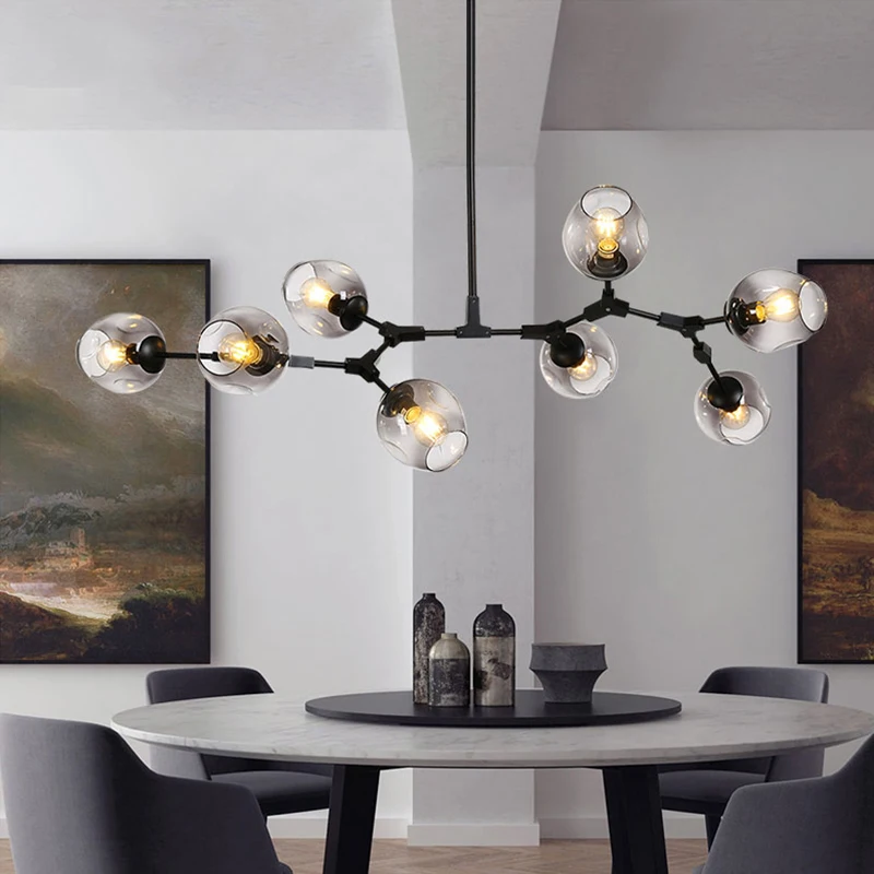 New Modern Led Chandelier Bubble Glass Shade Art Deco Pendant Chandelier Ceiling Indoor Lighting Diy Iron Branching Chandeliers