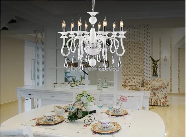 White Dining Room Chandeliers Lighting Led Modern Crystal Chandelier Glass Light Fixture Living Room Foyer Classic Chandeliers