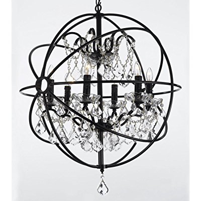 Spherical Orb Chandelier Wrought Iron And Crystal 6 Lights Overstock Com Shopping The Best Deals On Chandeliers