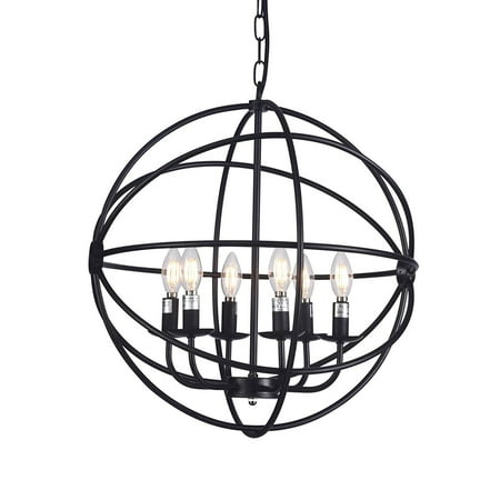 Wideskall 20 Modern Round Sphere Black Iron Wire Frame Hanging Chandelier Ceiling Light 6 Bulbs Lighting Fixture Ul Certificated