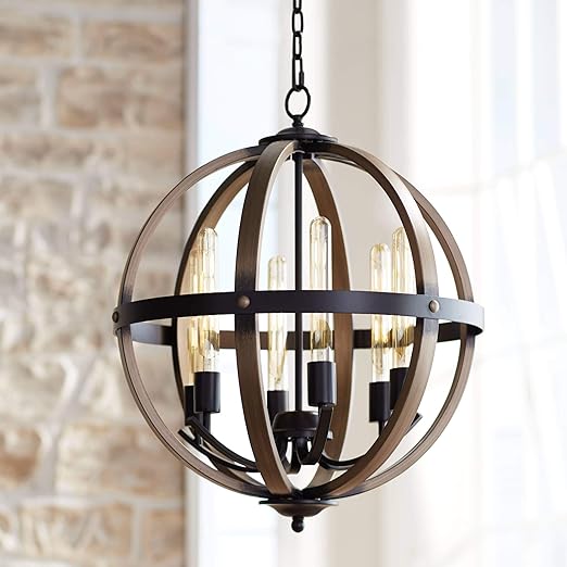Round Wood Light Fixture Chandelier Large Farmhouse Orb