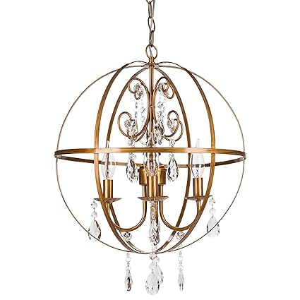 Amalfi Decor 4 Light Orb Crystal Beaded Chandelier Led Cage Wrought Iron K9 Glass Pendant Light Fixture Vintage Nursery Kids Room Dimmable Plug In