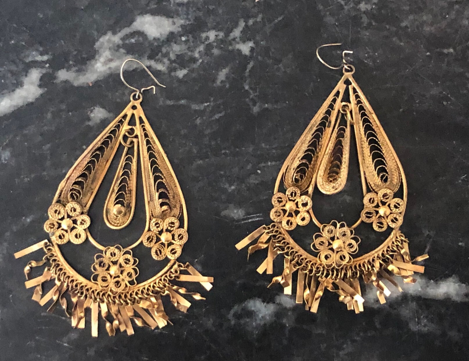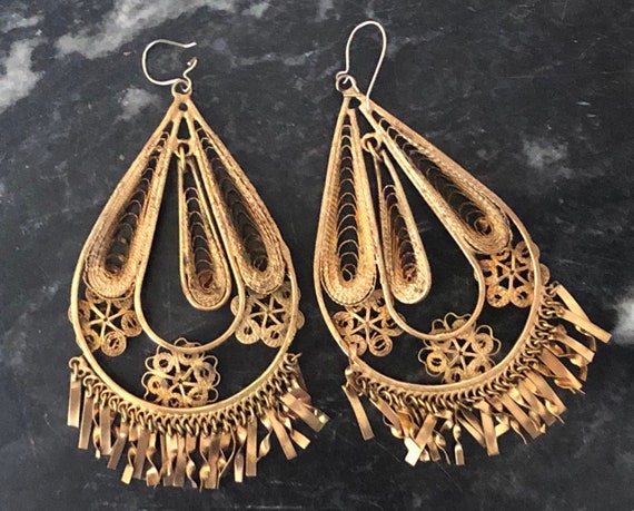 Vintage Mexican Filigree Chandelier Earrings