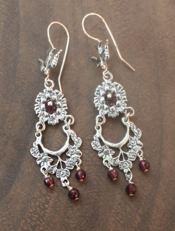 Chandelier Vintage Mexican Earrings Sterling Silver And Garnets Reproduction
