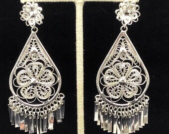 Mexican Silver Filigree Chandelier Earrings