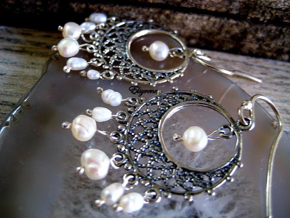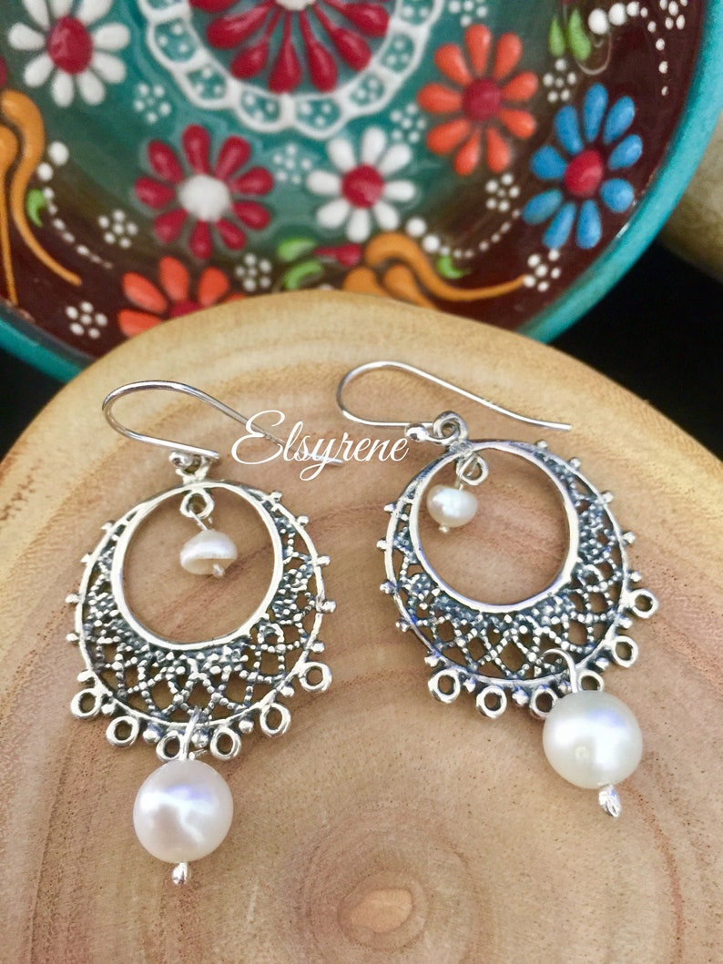 Boho Mexican Lace Filigree Chandelier Earrings Arracadas De Plata Y Perlas Pearl Mexican Chandeliers Pearls Hoops Gift For Her
