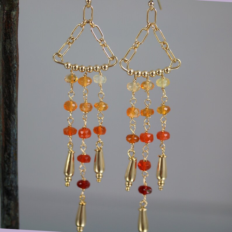 The Sunrise Earrings Mexican Fire Opal Chandelier Earrings In Gold Filled