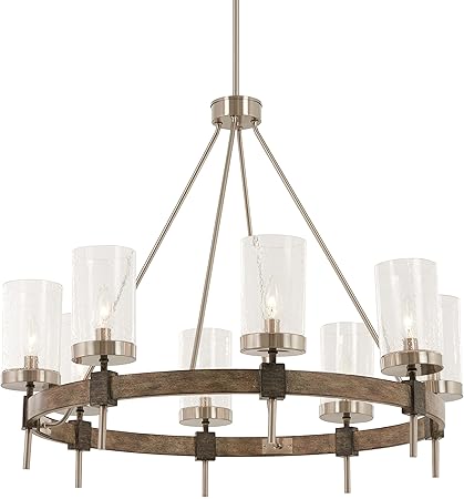 Minka Lavery 3068 84 Via Capri 4 Light Chandelier In Brushed Nickel With Clear Wood Grain Water Glass Shade
