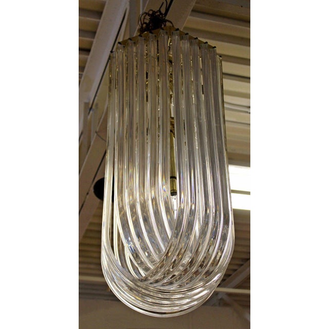 1950s Mid Century Modern Swag Lucite Brass Ribbon Chandelier Light