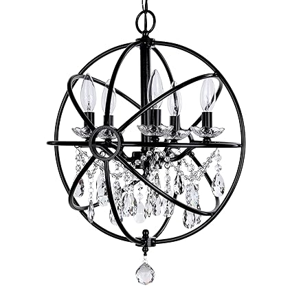 Modern Orb Crystal Swag Chandelier With 5 Lights Sphere Glass Pendant Ceiling Lighting Fixture Black