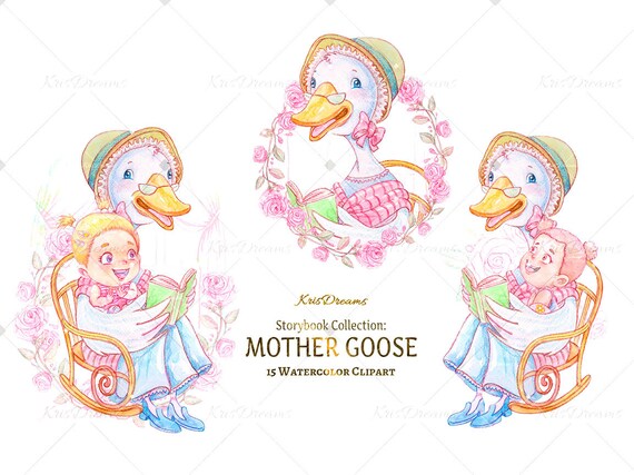 Nursery Rhyme Clipart Mother Goose Clip Art Watercolor Clip Art Storybook Fairytale Nursery Rhyme Clipart Children Goose Book Diy
